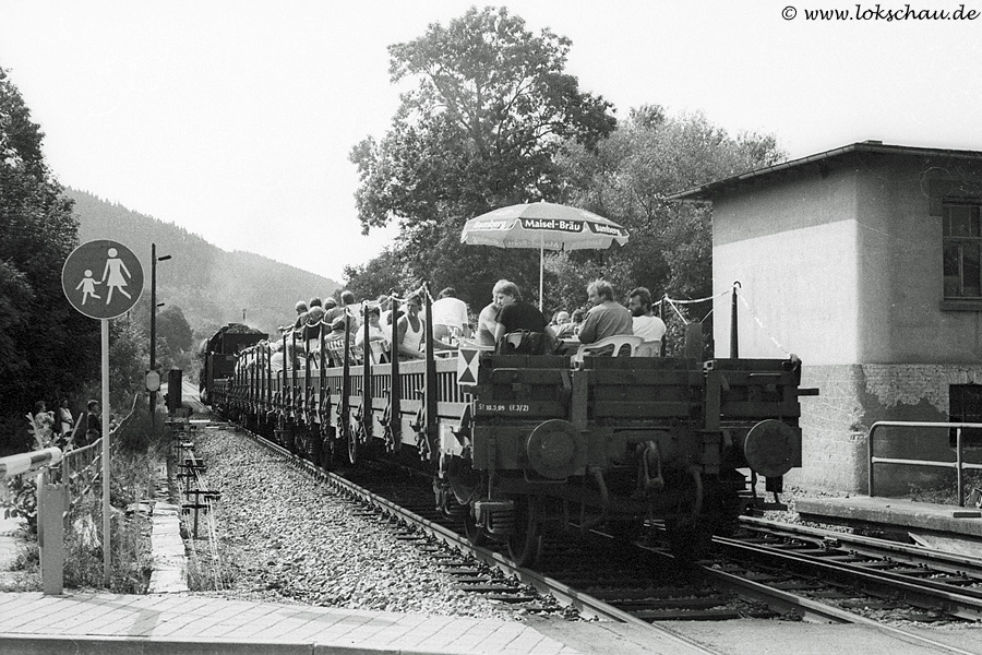 31 Jahre ist es her. Im Sommer 1992 wurde der Streckenabschnitt Bad Blankenburg - Rottenbach - und eventuell sogar weiter bis Stadtilm?, das weiß ich nicht mehr - erneuert. Über Wochen war der Verkehr unterbrochen. Aber nun war man fertig. Und am Vorabend der Freigabe verkehrte ein Dampfsonderzug Arnstadt - Bad Blankenburg und zurück als Bauabschlusszug für die Beteiligten Bauarbeiter. Das war damals neu. So was kannte ich bislang nicht.