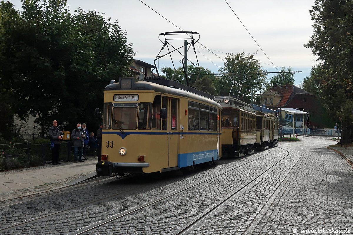 Ziel für uns an diesem Vormittag war die Woltersdorfer Straßenbahn. Nach einer Depotbesichtigung ging es weiter zum Endpunkt Woltersdorfer Schleuse. Wagen 33 ist das Fahrzeug des Regelverkehrs. Und wird in Kürze nach Rahnsdorf zurück fahren. |
