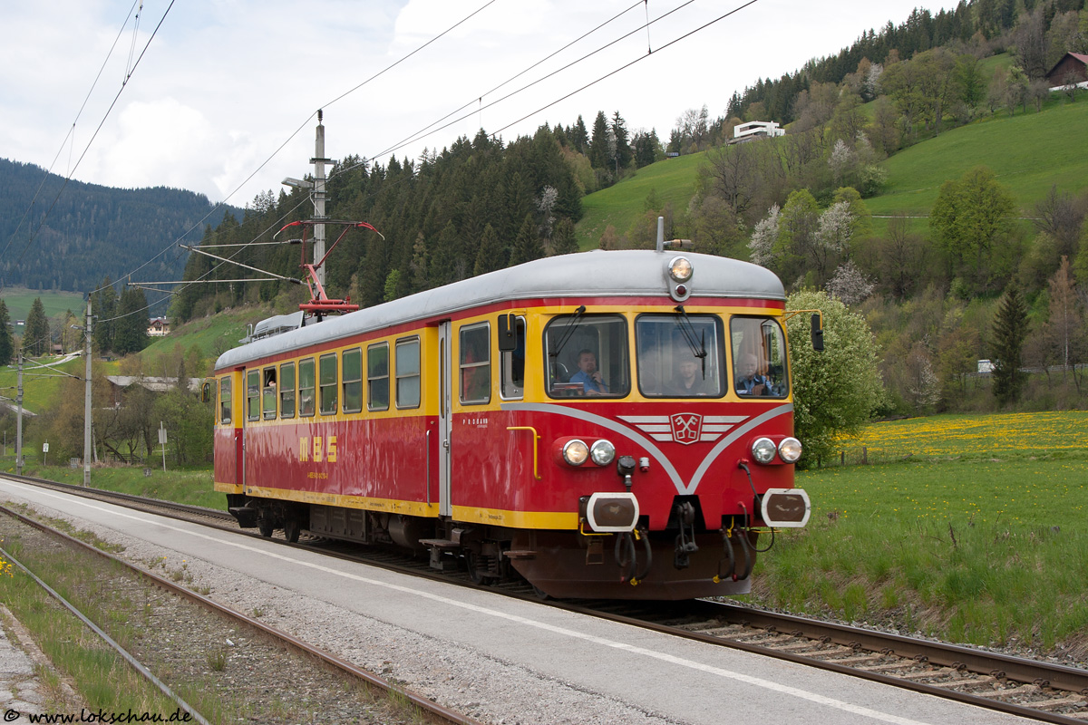 Über die Inntalbahn ging es bis Wörgl und dann bogen wir ab auf die Giselabahn Richtung Saalfelden. Am Haltepunkt Grieswirt begab sich der erste Fotohalt. Im Hintergrund der Wilde Kaiser.