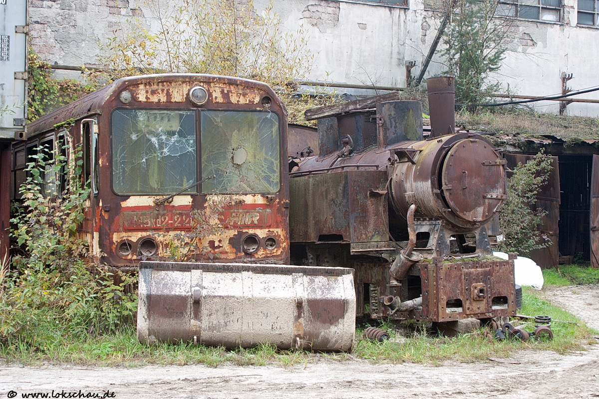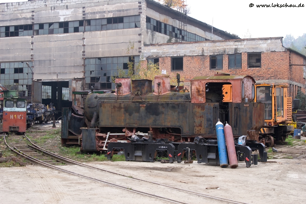 Neben dem ungarischen MBxd2-221 wieder eine völlig unbekannte Dampflok. Statt dieser Fahrzeuge zu verschrotten, ist es eben billiger sie hier verrotten zu lassen. Wobei man ja nie weiß, wozu man es mal verwenden könnte.