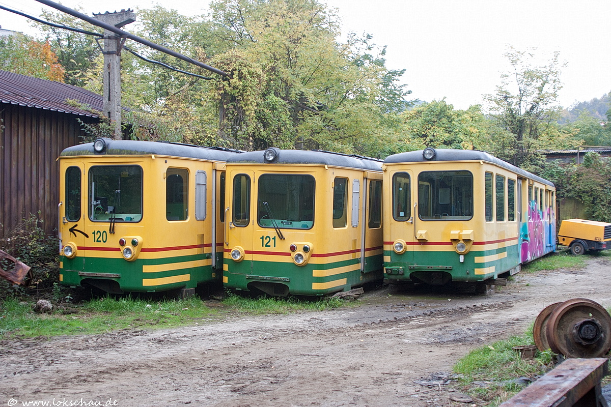Das sind Triebwagen der Wengernalpbahn. Ohne Drehgestelle. Mit den Beiwagen derselben Bahn sind wir auf der Wassertalbahn gefahren. Ob diese Chassis jemals wieder fahren werden kann niemand sagen...