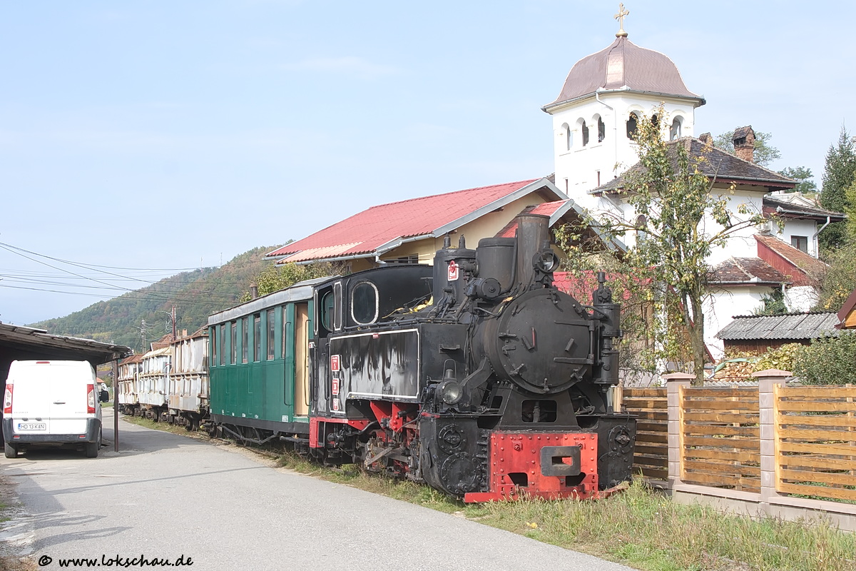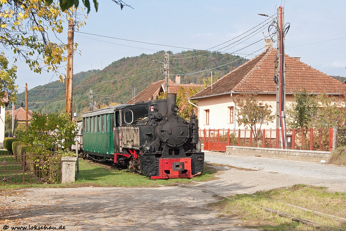 Brad ist auch Endpunkt einer normalspurigen Stichbahn. Am Gleisende steht dieser rumänische Nachbau einer preußischen P8. Gebaut 1933 bei Malaxa und als 230.214 bezeichnet. Wo wohl die Treibstangen geblieben sind?