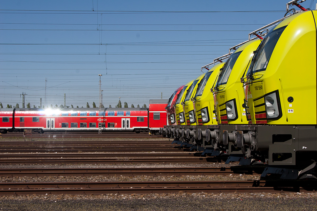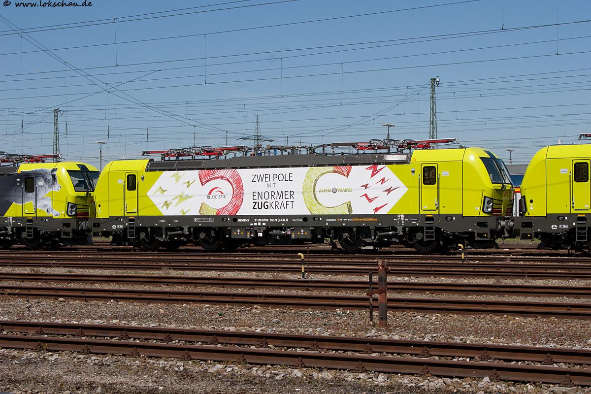 Im Rahmen einer Präsentation wurden am 30.04.2017 die zu diesem Zeitpunkt bereits an TX Logistik abgelieferten 6 Vectron von AlphaTrains (193 550 bis 193 555) in München zusammen gezogen. Im Betriebsbahnhof Pasing kam es in der so genannten Ausfahrgruppe zu einer Parade dieser Lokomotiven, die ihrer Nummer entsprechend, von inks nach rechts aufsteigend präsentiert wurden. Hier einige Eindrücke von dieser Veranstaltung.